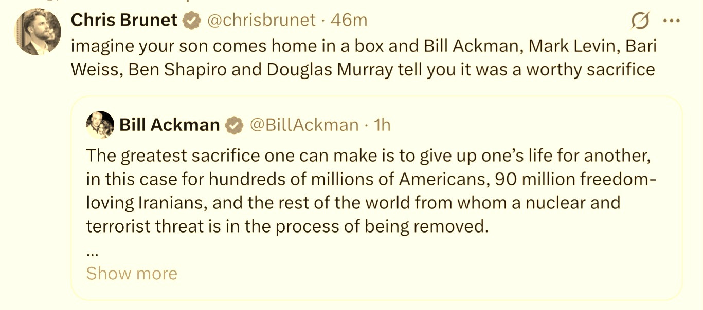 Tim Mak, just started an Iran War Dispatch. I’d keep Mak on speed dial. You know him from his Kiev, Ukraine reporting— was once an investigative correspondent for NPR, and a former U.S. Army combat medic.