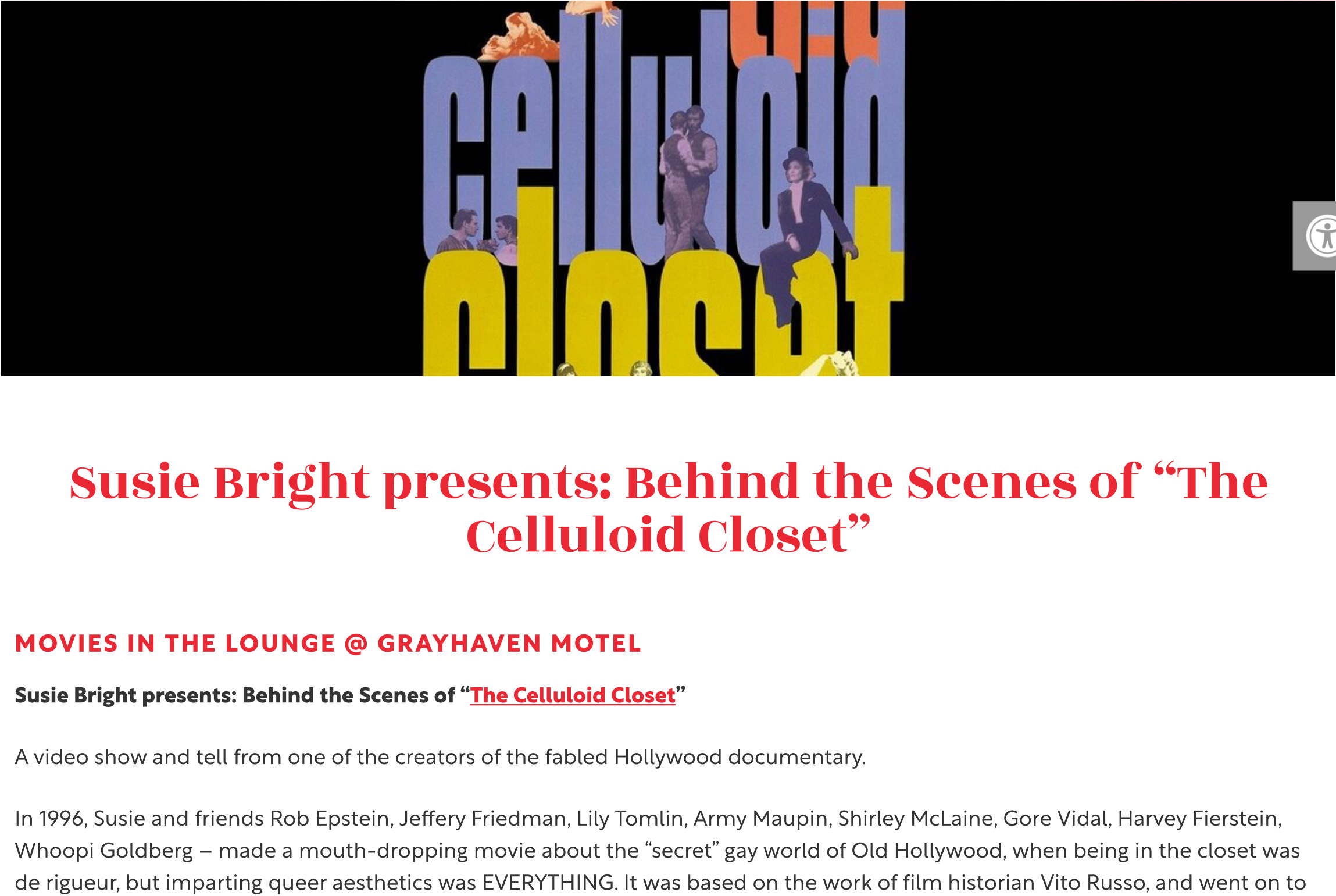 This Friday, December 12th, I’ll be presenting a Behind-The-Scenes screening of the Celluloid Closet, in Ithaca, New York.