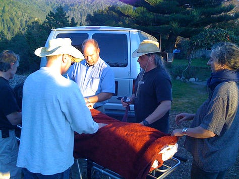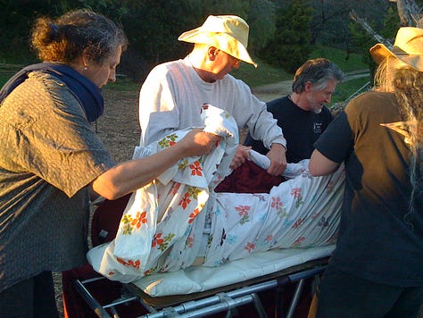 My lover and I were going to visit him on the 10th, in hospice, and on the way down Highway 1, his loving neighbors called to say, “He’s gone. We need to carry him out.” Bob lived on a mountain ridge, no car access to his cabin.