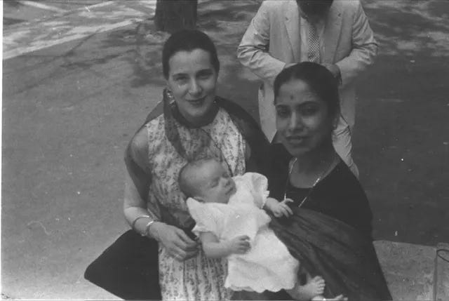 Long after they returned to Berkeley at my birth in ‘58, after their ‘60 divorce, one thing stayed the same between their trajectories: looking back at India. Two kinds of music on their record players (okay, plus Pete Seeger): Western classical and Ravi Shankar. The latter was the first live concert I remember, falling asleep on my daddy’s shoulders at Occidental College.
