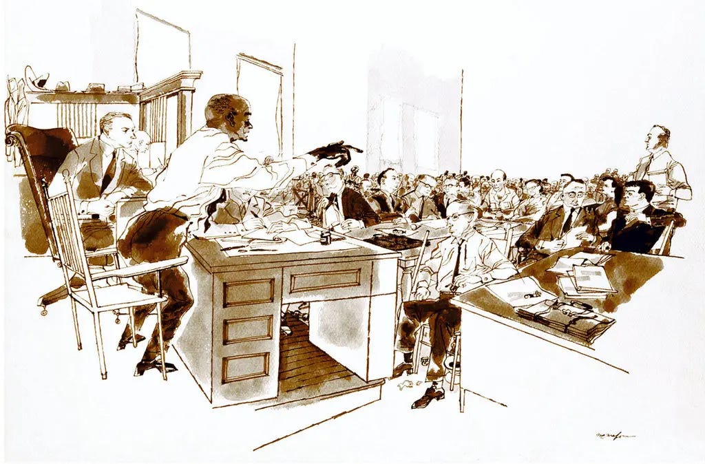 Franklin McMahon is the most famous courtroom “sketch artist” of all time— in part because of his skill, and in part because he covered the most notorious criminal trial of the 20th Century, the Trial of the Chicago 8.