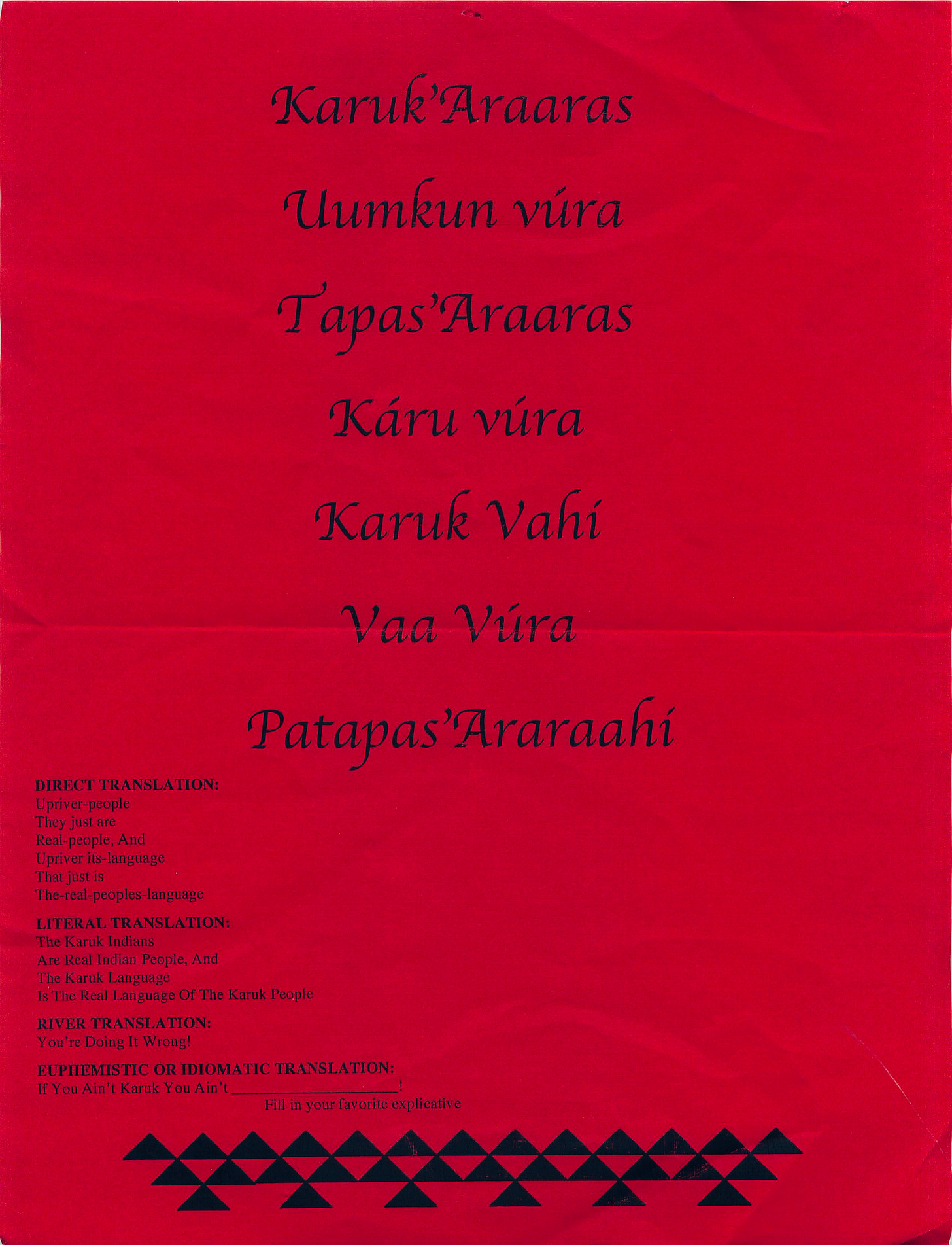 There were precious few community members still conversing in Karuk, because simply being alive and holding on to one’s language in the first place was so rare, so hidden.