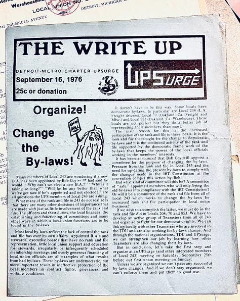 I was in a minuscule New Left socialist group in the 70s,1 who started a rank and file progressive group, called TDU, in the notoriously corrupt and powerful Teamsters. The IBT was run at the time, but a combination of Mafia dons and Nixon hacks. We organized, from the bottom up, we stood down the bosses on the Master Freight Agreement, and kicked out the corrupt leadership.