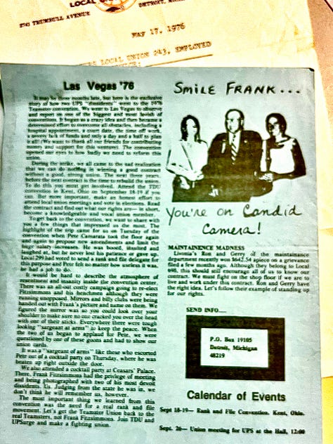 The little newsletter that says, “Smile, Frank!” — that was the Detroit UPSurge newsletter, called the Write-Up. Jenny Vail and I produced it, that’s my handwriting. Ha!