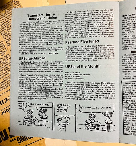 And as to Susie’s comment about the all male wikipedia TDU comments - again, she is so right and more important she names the women, or some of them, who were the backbone of TDU. as for Anne Mackie, she was the second driver hired by UPS in the early 1970’s a born John Lewis trouble maker she organized a rank a file movement among UPS drivers an warehouse sorters. think about this, Ann was under 30 (as were most of the other women mentioned) and led, repeat LED a mass movement of overwhelmingly male UPS drivers. They loved her and respected and treated her with great respect. She put out an exceptional newspaper UPSurge, with brilliant journalism and wickedly funny cartoons. Ann was fearless. UPSurge actually made money which no other rank and file union newspaper did at the time. She worked out of the Cleveland Ohio UPS job. One of her supervisors (or on UPSurge lingo stupidvisor) was in the very same National Guard unit which murdered and wounded the Kent State students. Every May 4, Ann would wear a Remember Kent State tee shirt to work. She also was treated like shit, her work demeaned by some of the bris in the wikipedia article. A terrific tank and file organizer, leader, role model and terrific dancer.