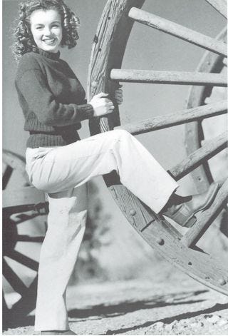 Making s'mores with Marilyn Monroe over an open fire, horse-riding together and talking softly.